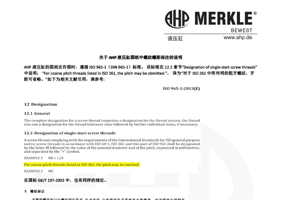 关于 AHP 液压缸图纸中螺纹螺距标注的说明