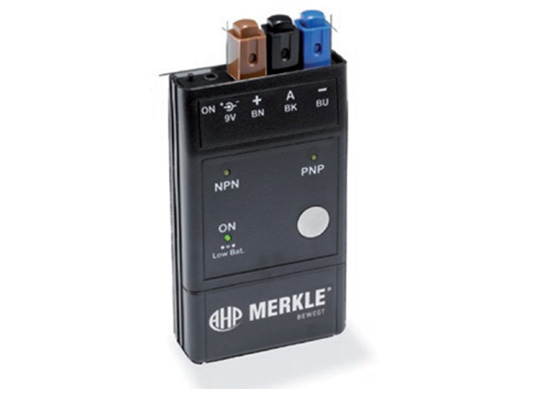 对于PNP/NPN、NO和NC传感器;用于测试传感器的集成钢测量板;怠速约30秒后自动关闭;- 由单个9 V电池供电;-视觉和声音信号