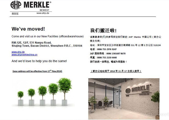 由于公司业务发展与扩大,AHP Merkle 中国公司总部自2014年11月17起搬迁至新地址
